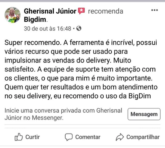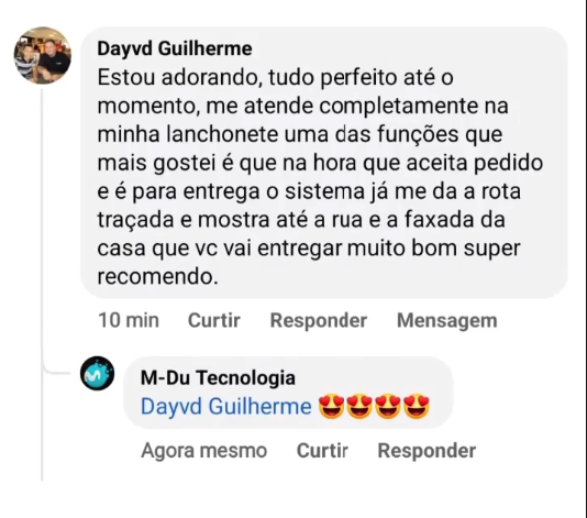 Tipos de entrega: Delivery, retirada no balcão e consumo no local |